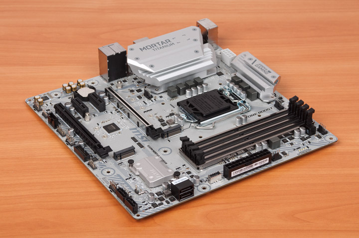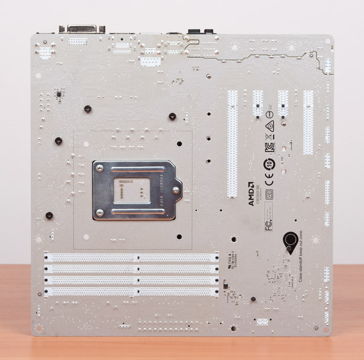 Больше всего выделяется огромный радиатор на силовых элементах, из-за чего даже нет декоративного колпака над портами ввода-вывода. Армировано главное гнездо PCI-E, экранированы слоты оперативной памяти. Размер платы полноценный как для устройства формата mATX, можно воспользоваться восемью крепёжными отверстиями для фиксации положения в корпусе.