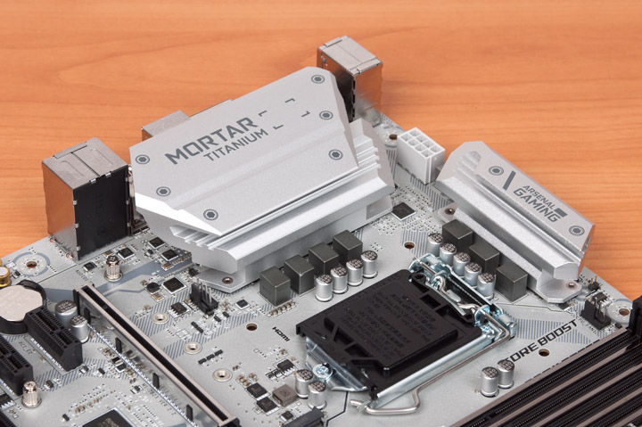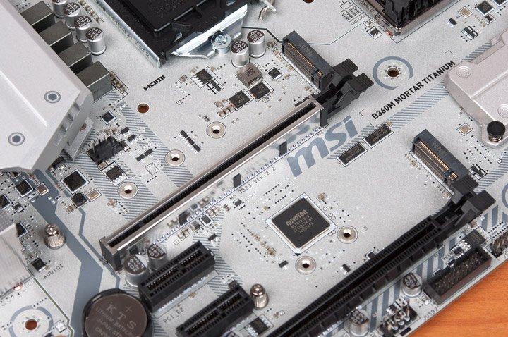На гнёздах формата M.2 отсутствуют какие-либо радиаторы. Верхнее позволит смонтировать самые длинные устройства, а нижнее ограничит их длину 80 миллиметрами.