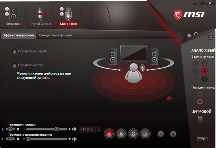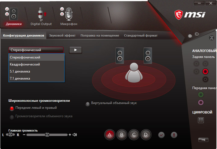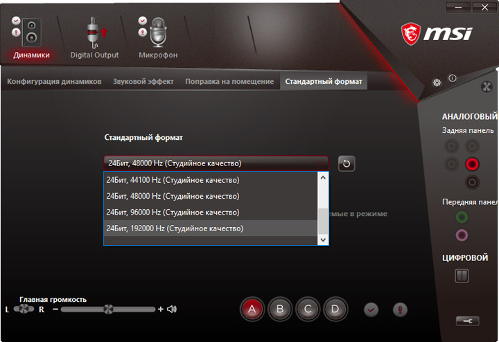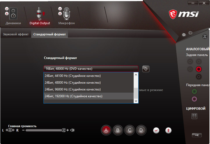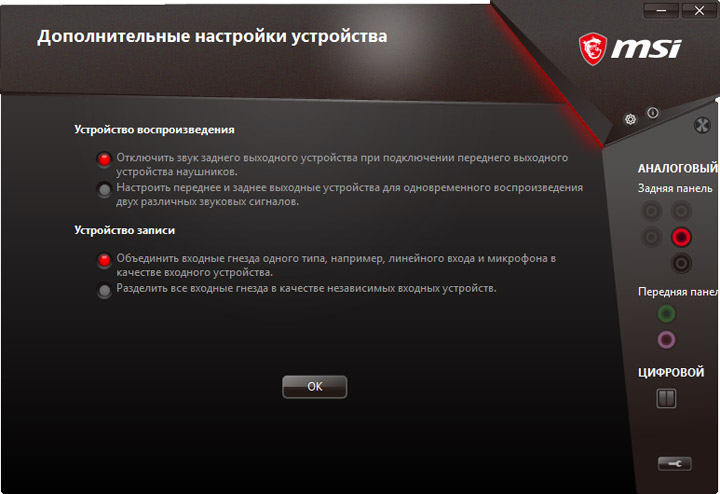 Настройка звучания проходит при участии фирменного конфигуратора от Realtek. Профили с предусилением выходного сигнала отсутствуют, но есть несколько типов подключаемого оборудования. Когда выбирать «Наушники» — уровень громкости будет повыше. Общий характер подачи материала, к сожалению, ничем похвастать не может. Звук полностью соответствует бюджетному кодеку, без снисхождений и поблажек его можно описать как посредственный. Куда ни глянь — везде есть замечания. Сцена не выражена как класс, в диапазоне ВЧ отсутствует прозрачность, чёткость, в НЧ — хотя бы какая-либо артикулярность и объём. А для исправления ситуации программных бонусов (утилит) производитель не предусмотрел, довольствоваться можно будет исключительно возможностями (профилями), заготовленными специалистами из Realtek.