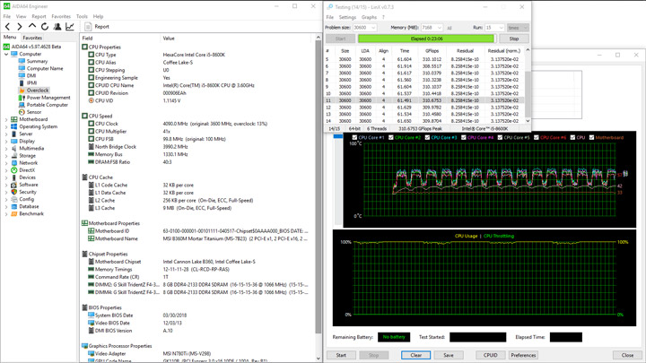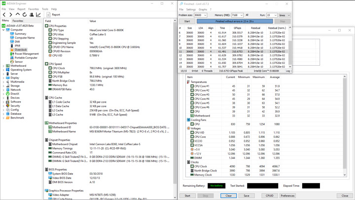 Особых плодов улучшение схемы не принесло, опираясь на результаты замеров в LinX. Удивительным стало другое — процессорное напряжение оказалось небывало низким. Пиковая отметка не превысила 0,9 вольт! Это не замедлило сказаться и на общей температуре процессора, и на каждом из его ядер в частности.