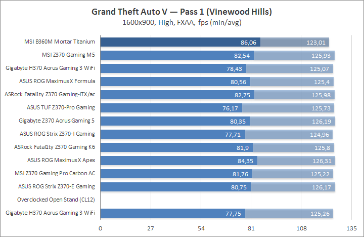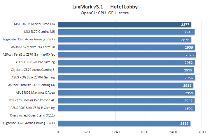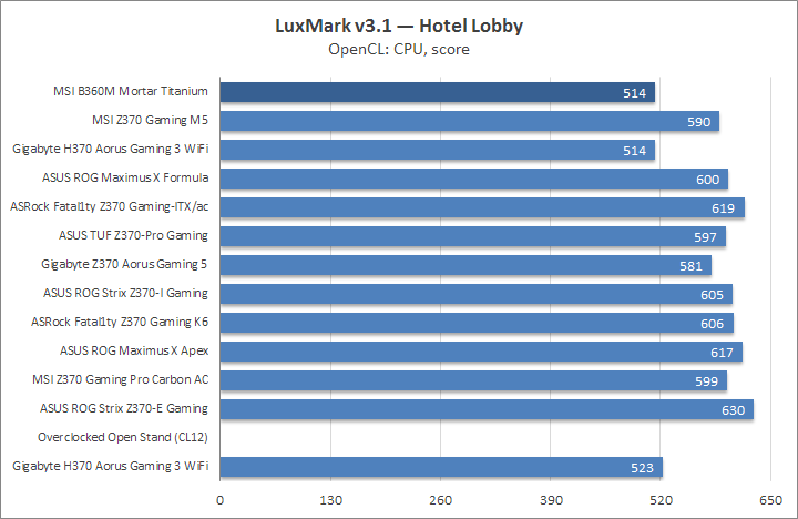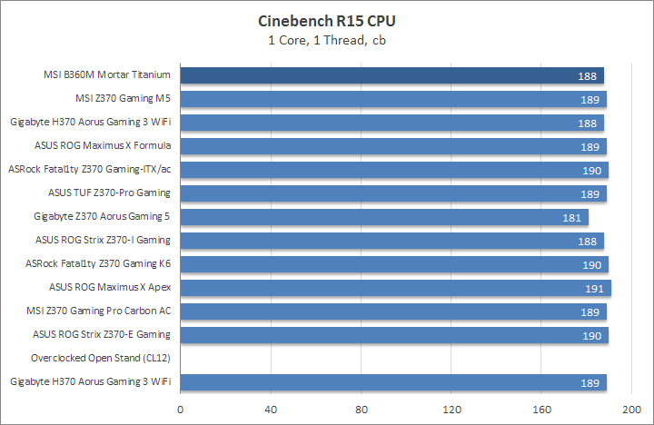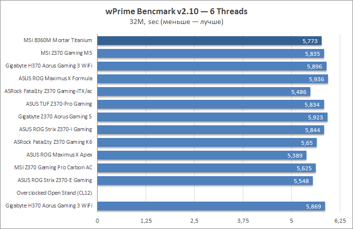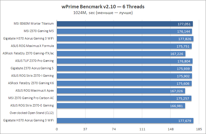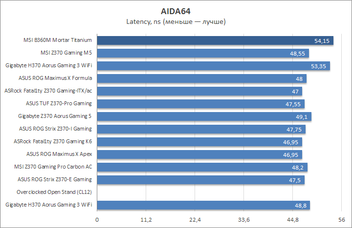 Отсутствие роста вспомогательных напряжений в результате активации XMP и низкие действующие уровни процессорного напряжения не замедлили проявиться в итоговых цифрах потребления. Оно вышло низким как никогда до этого момента. Напряжение на памяти было увеличенным, а значит, тонкая настройка работы DRAM не должна оказать существенного влияния на полученный уровень. Здесь B360M Mortar Titanium заслужила исключительно положительные отклики.