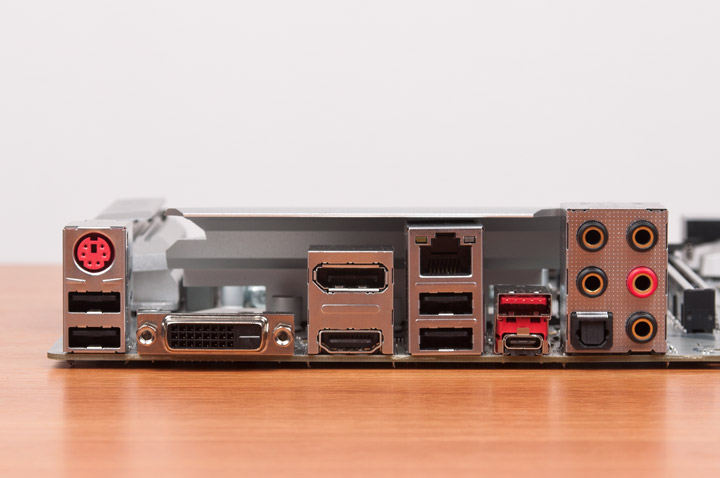 Конфигурация портов на задней панели практически полностью соответствует модели прошлого поколения — B250M Mortar. Единственное изменение — появился оптический выход, на отсутствие которого именно в тот раз мы обращали внимание. А сегодня достаточно спорным является отказ (иначе это уже и не назвать) от размещения модуля Wi-Fi, поскольку компания Intel предприняла весомые шаги навстречу его появления на каждой из новых плат. Выходит, как и прежде, наличие адаптера беспроводных сетей остаётся «фишкой» для части «особых» устройств.
