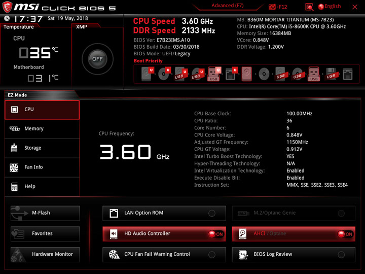 | Модель | MSI B360M Mortar Titanium (MS-7B23 VER:2.2) |
