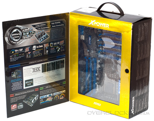 На откидной крышке предлагают обратить внимание на элементную базу платы, а через вырез в коробке убедиться в наличии Big Bang-XPower.