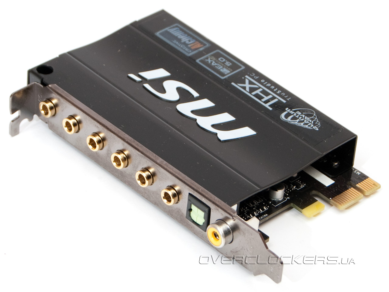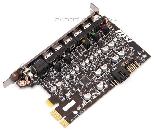 Несмотря на то, что дискретные звуковые модули используются все реже и реже, компания MSI пока решила от них не отказываться. Карта выполнена на небольшой плате с разъемом PCI-E x1 и защитным металлическим кожухом.