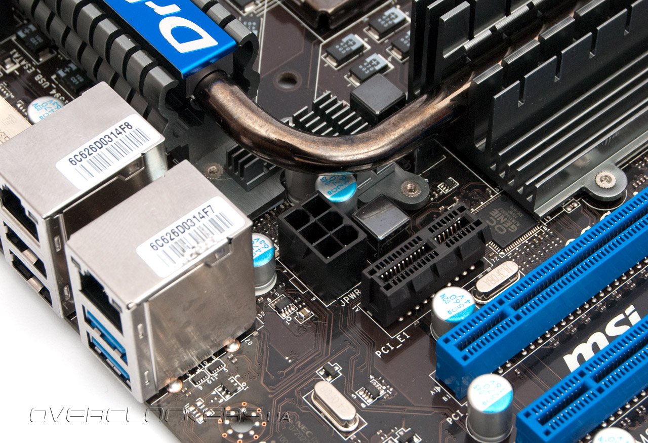 Кроме того, разъемом дополнительного питания обзавелись слоты PCI Express — возле задней панели материнской платы расположен шестиконтактный разъем, используемый обычно на видеокартах.