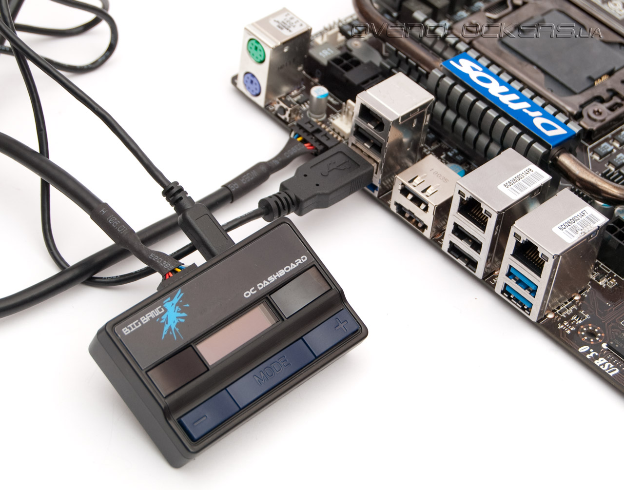 Пульт OC Dashboard предназначен для разгона и вывода информации о состоянии системы. Для последнего достаточно подключить его USB-кабелем, а для полной функциональности уже потребуется специальный кабель, поставляемый в комплекте (подключать можно лишь одним кабелем).