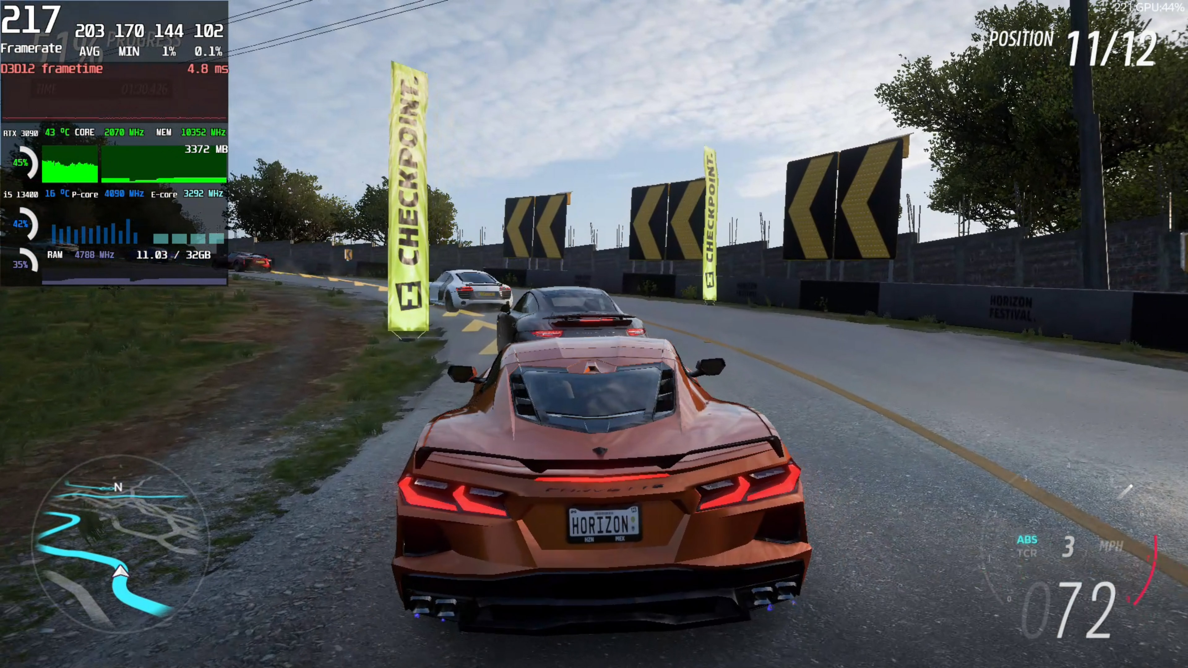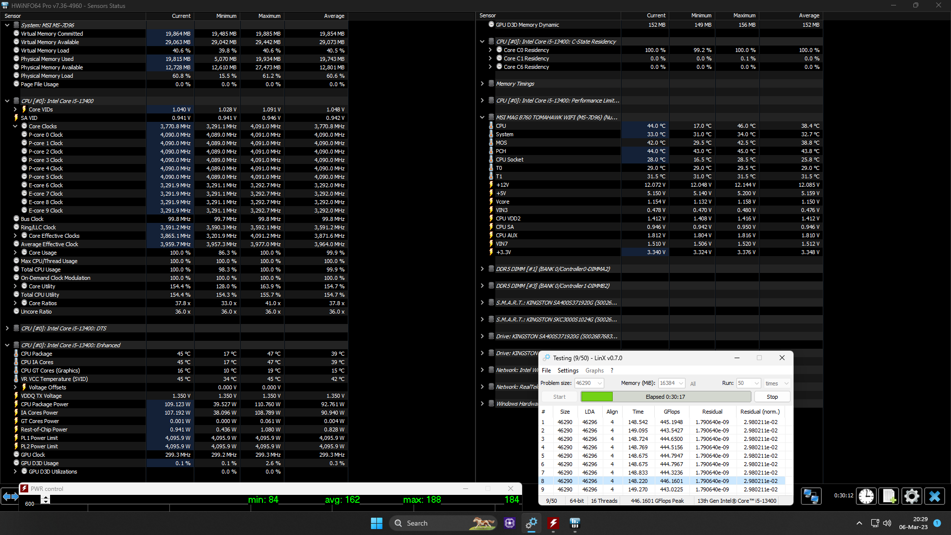 В среднем P-cores работали на частоте 4090 МГц, а E-cores — на 3292 МГц, согласно мониторингу HWINFO. То есть, удерживаются максимально разрешенные значения для конкретного процессора.