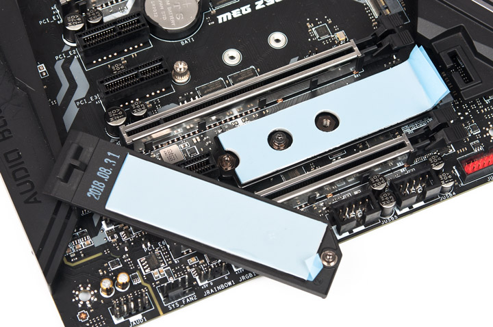 Для третьего гнезда ограничение такие же, как и у второго, зато тут есть двухсторонний предустановленный охладитель M.2 Shield. Обе части конструкции снабжены термопрокладками.
