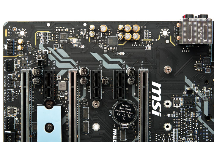 Процессорные линии PCI-E могут быть рассредоточены между тремя экранированными слотами благодаря работе шести свитчей. Одинарные PCI-E x1 работают с PCH.
