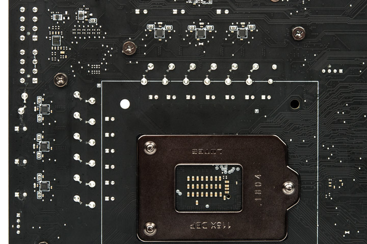 На обратной стороне платы можно выделить винтовой способ крепления всех охлаждающих конструкций.