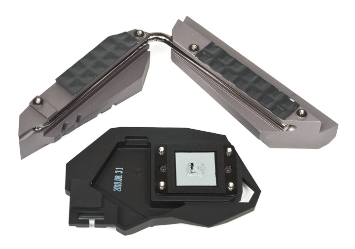 Оформление радиатора VRM выполнено с упором на стиль. Но тепловая трубка всё же есть, к тому же находится она у основания конструкции, то есть принимать участие в работе обязана.