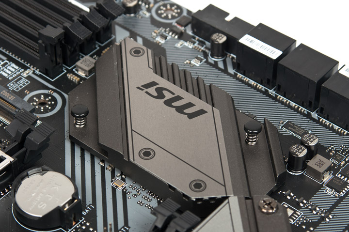 Формальная принадлежность продукта к начальной категории товаров идёт в разрез с усиленным сектором VRM двумя гнёздами питания. Размеры вписались в стандарты ATX, есть девять отверстий для закрепления устройства в корпусе. Кнопки, переключатели, индикатор кодов POST — отсутствуют, имеется уже привычный для MSI диагностический комплект из четырёх (красных) светодиодов Q-LED. Здесь этот набор дополнили ещё четверо элементов, ответственные за индикацию установки модулей ОЗУ в слоты, они распаяны в верхней части платы.