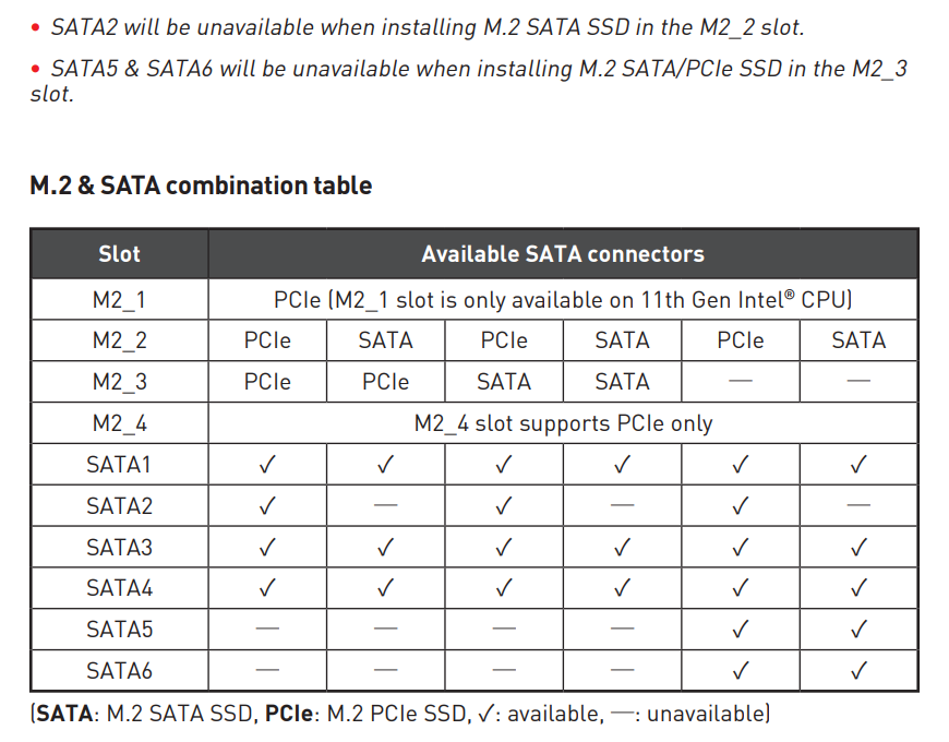 | M.2 | 1 x PCI Express 4.0 x4 (Key M, 2242/2260/2280/22110) — 11th Gen CPU 2 x PCI Express 3.0 x4, SATA 6 Гбит/с (Key M, 2242/2260/2280) — Z590 1 x PCI Express 3.0 x4 (Key M, 2242/2260/2280) — Z590 |