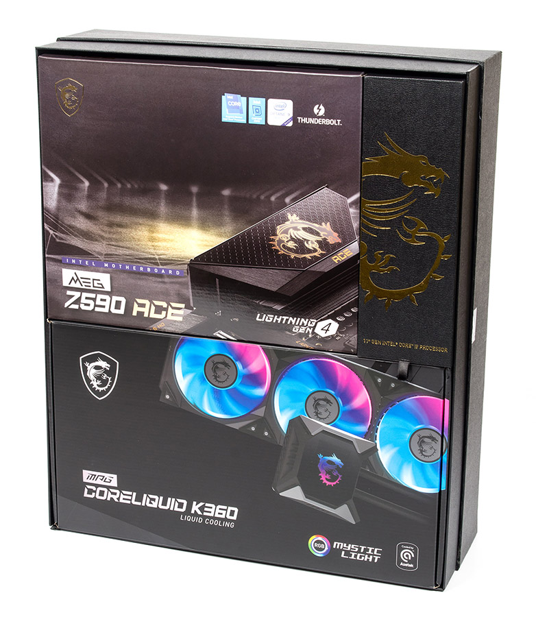 Внутри, как и у всех наших коллег, оказались процессор Core i9-11900K (не инженерная, а финальная розничная версия), рассматриваемая плата MEG Z590 Ace и фирменная система охлаждения MPG Coreliquid K360.