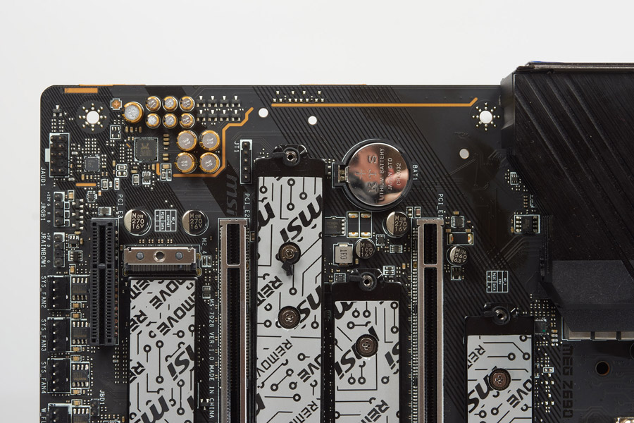 Охлаждение чипсета — это цельный радиатор с ребрами, который контактирует с кристаллом Z690 через термопрокладку. Фиксация винтами по диагонали, установлены резиновые подкладки для снижения риска скола кристалла.