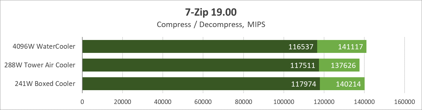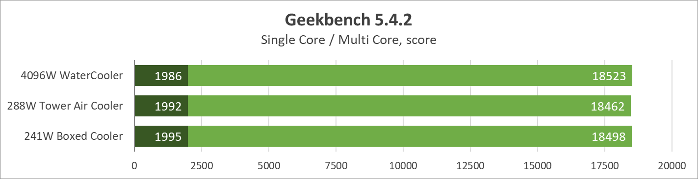 Как показало тестирование режимов, материнская плата способна выжать гораздо больше, тестовый экземпляр процессора оказался той еще печкой, все ли будут таковыми ответить наверняка невозможно в силу пока что единственного протестированного экземпляра и отсутствия статистики в Сети. Исходя из тестов, даже при наличии AIO-системы или суперкулера выгоднее не снимать лимиты потребления процессора и ограничиться Boxed Cooler, в противном случае можно столкнуться с троттлингом. Пиковые температуры составили:
