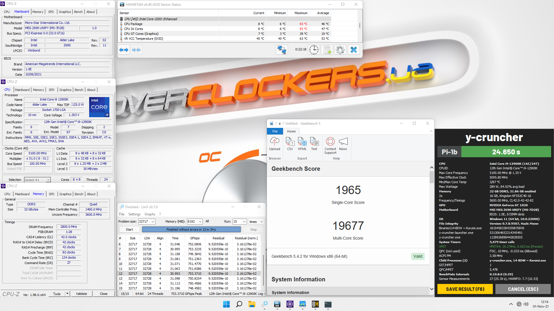 - материнская плата: MSI MEG Z690 Unify (UEFI E7D28IMS.10E);