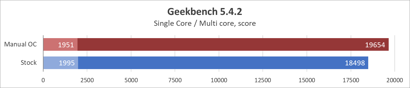 Итого над автоматикой полностью заводского режима в умелых руках можно добиться в среднем до ~9,5% роста производительности (в лучшем случае 30%, в худшем случае 0%), и это с флагманом линейки, который, чего скрывать, очень прожорлив и горяч. А значит с младших представителей Alder Lake наверняка получится выжать больше.