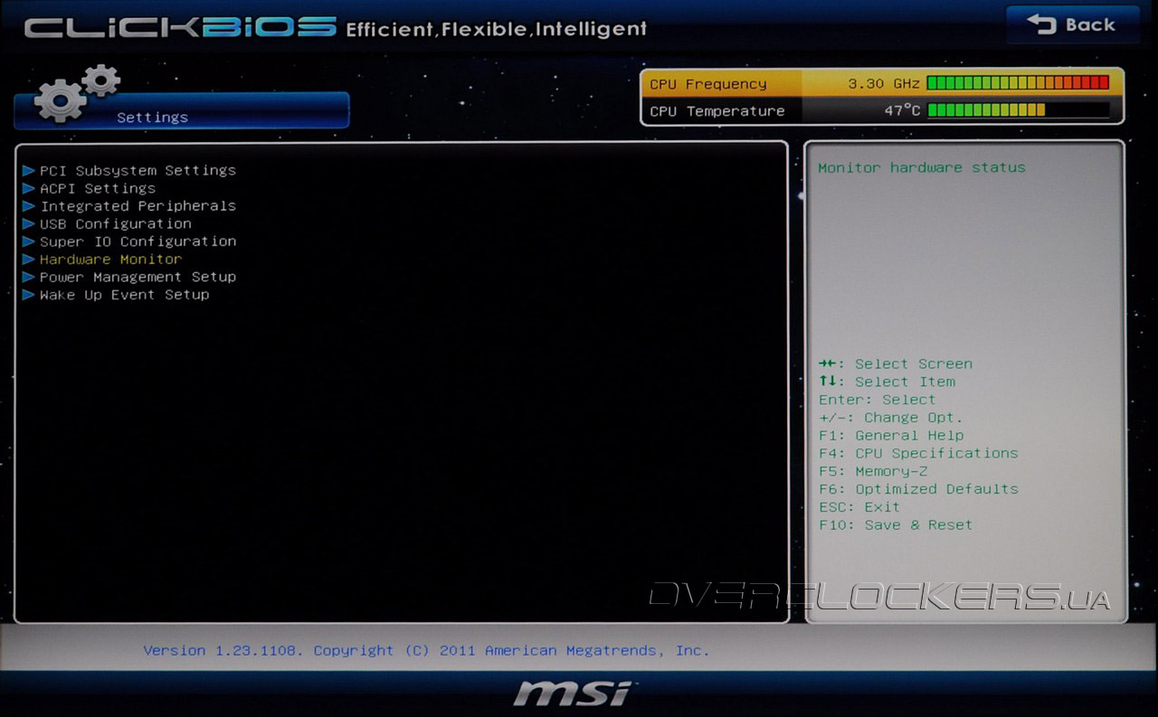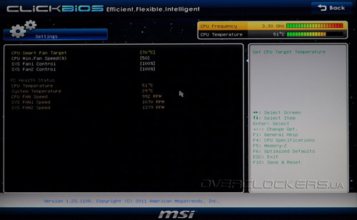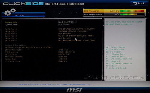 Как и у большинства системных плат LGA1155, в качестве прошивки на MSI P67A-GD55 применяется UEFI (основанный на микрокоде AMI). Преимущества нового стандарта над «старичком» BIOS очевидны и были неоднократно озвучены в предыдущих материалах. По мнению разработчиков, новый интерфейс получился таким интеллектуальным, гибким и эффективным, что даже получил собственное имя «Click BIOS». Попасть в меню прошивки можно, как обычно, нажав клавишу «Del» во время прохождения процедуры POST.