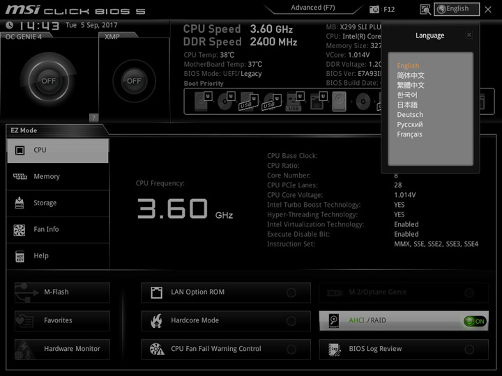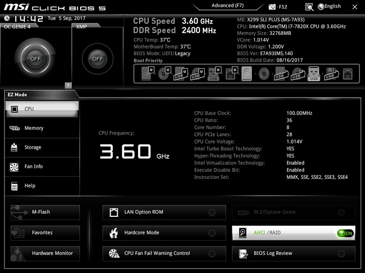 | RAID | 0, 1, 5, 10 (SATA, X299) 0, 1 (M.2 PCI-E, X299) |