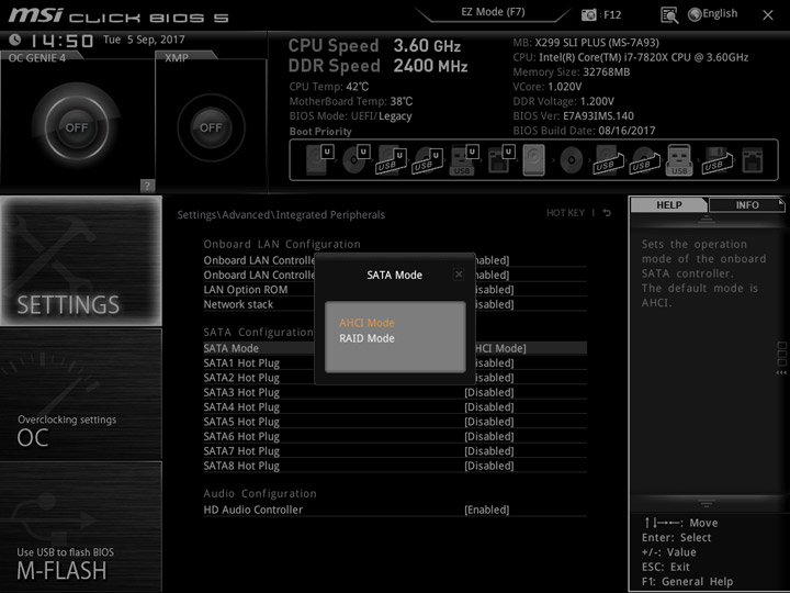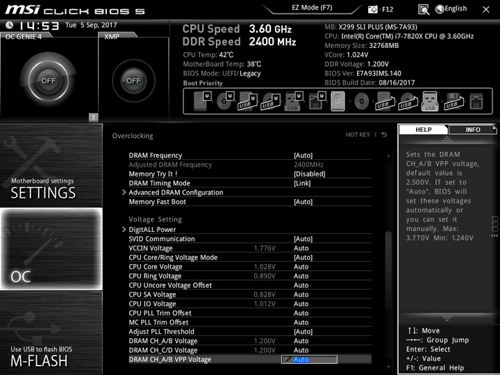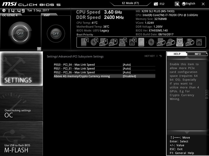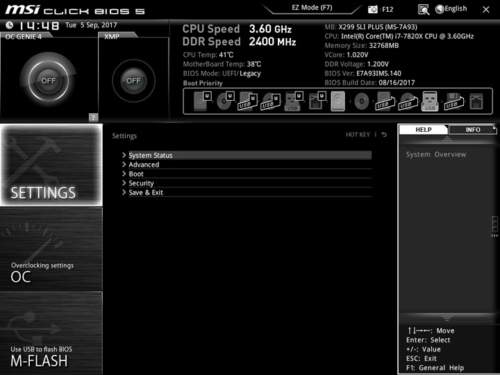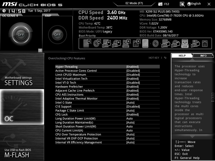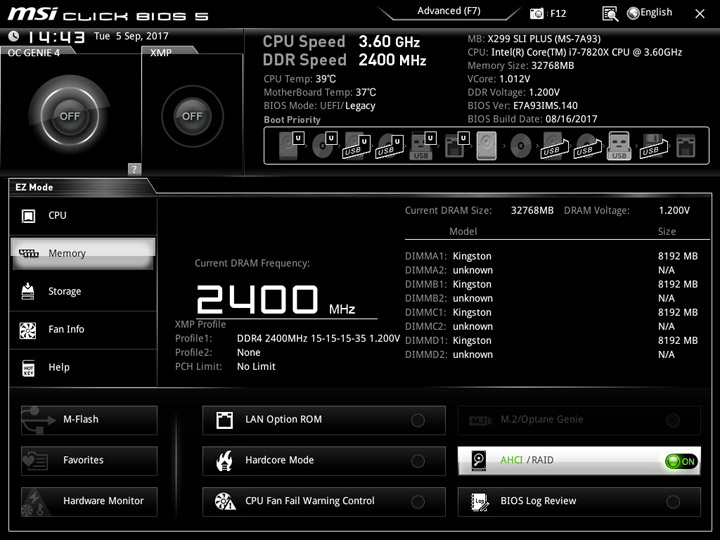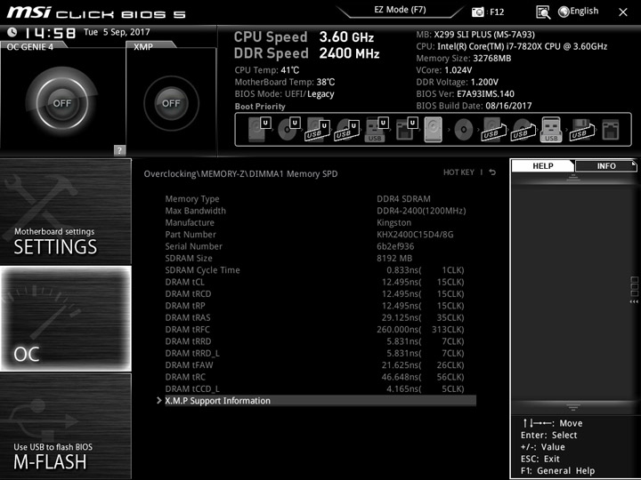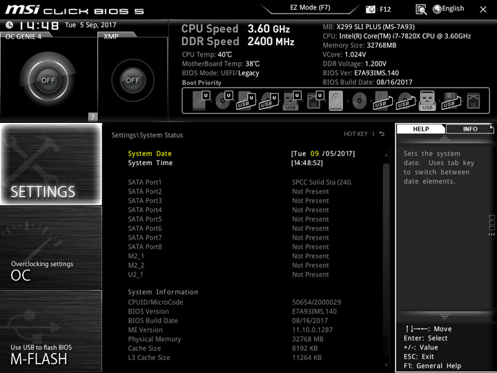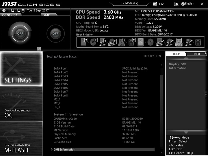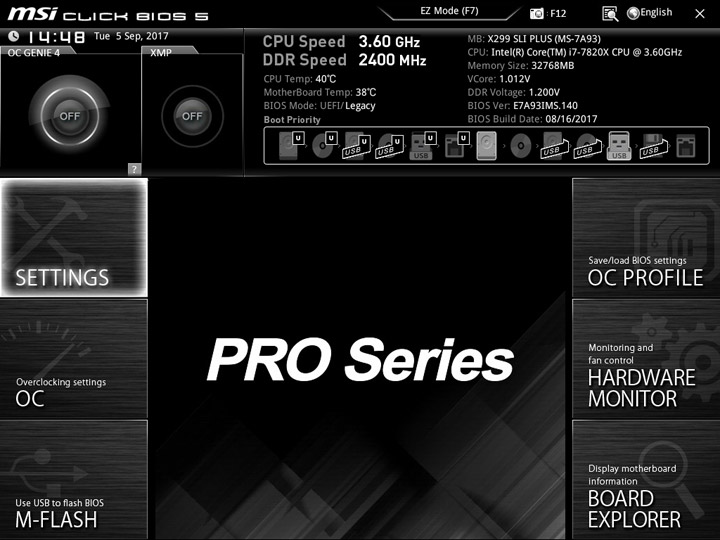| Модель | MSI X299 SLI Plus (MS-7A93 VER:1.2) |