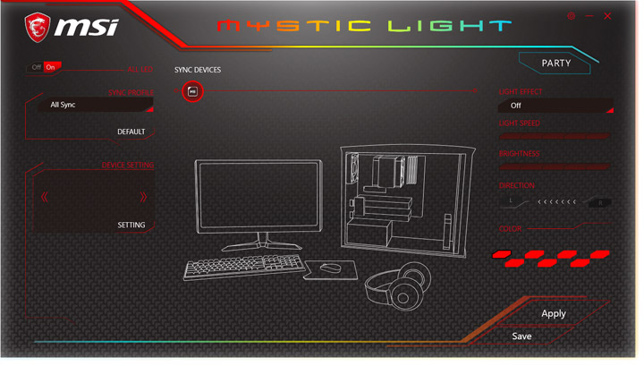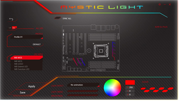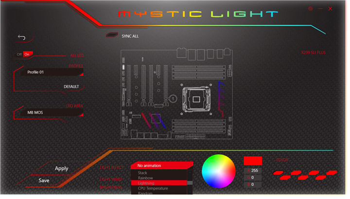 Mystic Light необходима для настройки системы подсветки. Реализация UI довольно спорная, есть много моментов, сперва неочевидных. Например, часть настроек работает только после обесточивания и последующего старта ПК, хотя во время наладки схем иллюминации кажется, что выбранные параметры попросту неработоспособны. Впрочем, возможность для вдумчивой настройки подсветки предусмотрена, потребуется лишь время, чтобы разобраться с управлением.