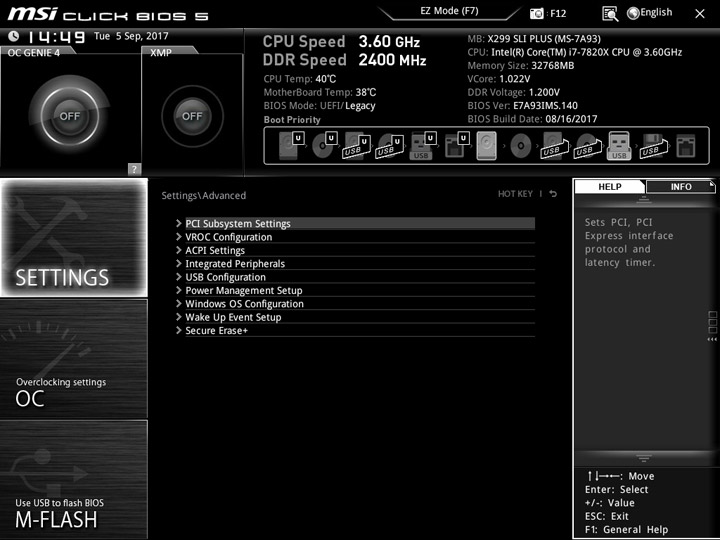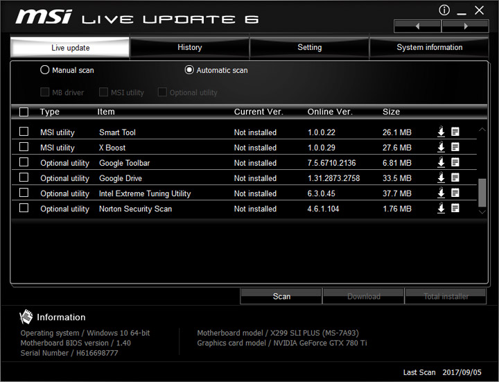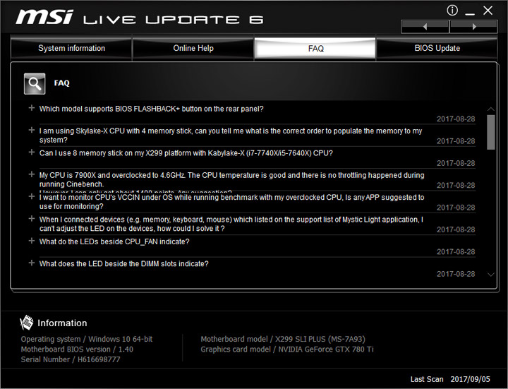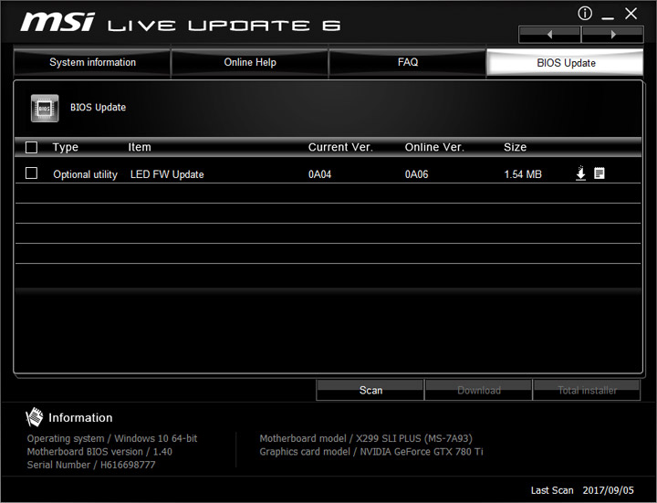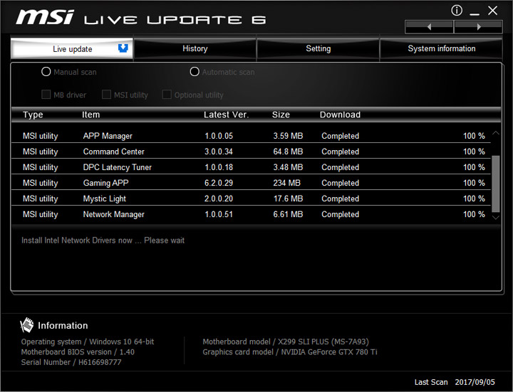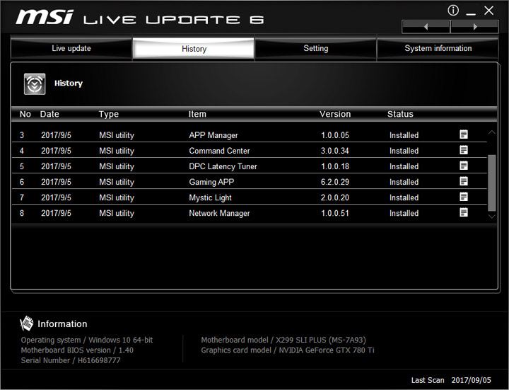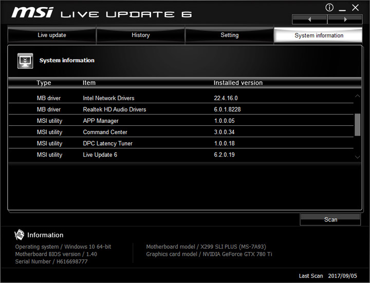 | MSI X299 SLI Plus | 1.40 | 5.92.4346 | 4.3.759-x64 | 10.0.15063.540 |
