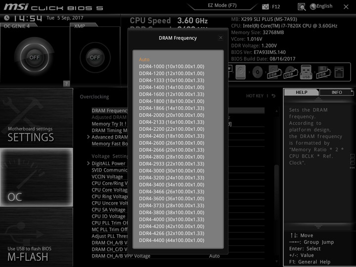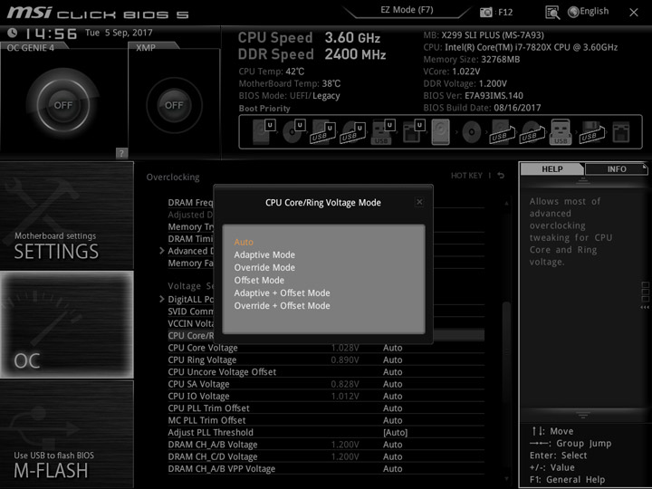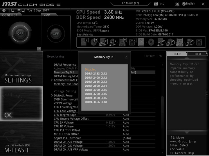 Меню с наличием разгонных пунктов имеет два режима — Normal и Expert. Разящей разницы между ними нет, последний вариант приоткроет несколько тонких настроек. Есть возможность управления множеством напряжений. Готовых профилей для испытания комплекта памяти не так много, как можно видеть у более дорогих устройств, но для воплощения собственных задумок по разгону здесь есть множество переменных.