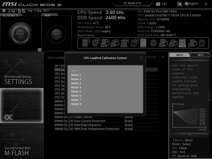 | CPU Loadline Calibration Control | Auto/Mode 1…8 | 1 |