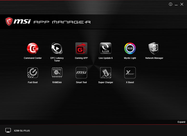Набор программ характеризуется отсутствием ярко выраженных игровых утилит, они поставляются вместе с системными платами игровых серий. Сразу хочу выделить новинку — App Manager, там собраны ярлыки для запуска разросшегося числа фирменного ПО от MSI. Бонусных продуктов от сторонних производителей фактически здесь нет.