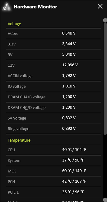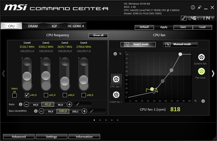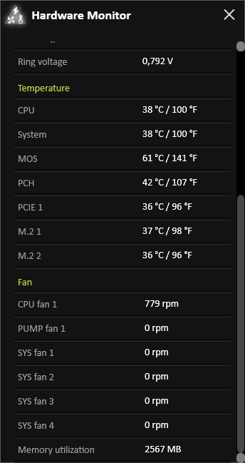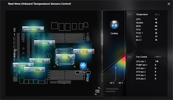 Command Center ничем не отличается от прежних версий, которыми комплектовались платы, вышедшие прежде. Модуль по наладке работы системных охладителей всё так же обладает худшими возможностями на фоне заложенных в UEFI. На мой взгляд, лучше всего возможности центра подходят для мониторинга состояния системы.