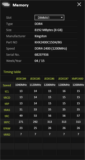 | Память | 8 DIMM DDR4 SDRAM 2133/2400/2667/2800*/2933*/3000*/3200*/3333*/3400*/3466*/3600*/3733*/3800*/3866*/4000*/4133*+(OC), максимум 128 ГБ (для четырёхядерных моделей — 4 DIMM и максимум 64 ГБ) |