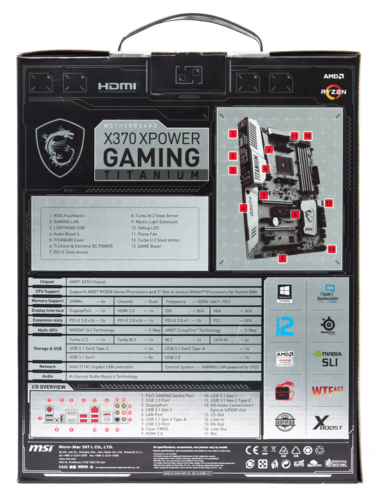 Учитывая невыдающуюся производительность и редкое обновление платформы AMD AM3+, многие производители не уделяли ей должное внимание в плане выпуска топовых решений. Но появление новейшей AM4 кардинальным образом должно все изменить. Рассматриваемая модель MSI X370 XPower Gaming Titanium является флагманом производителя, то есть тут сконцентрировано всё могущество возможностей без каких-либо компромиссов. Главным образом, особое внимание обязаны были уделить организации питания, чтобы, по возможности, получить максимум от используемых компонентов системы.
