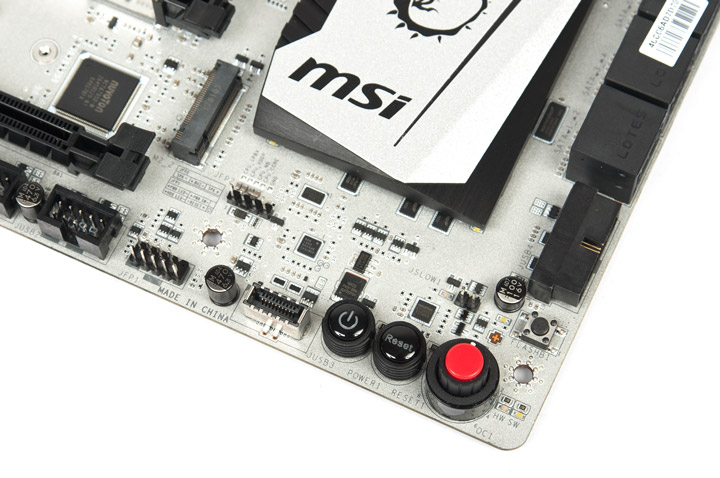 В правом углу находятся три кнопки — старта, перезапуска и аварийного восстановления прошивки. Есть ещё многопозиционный переключатель Game Boost. Автоматический разгон изучим в соответствующем разделе. Над колодкой под «спикер» присутствуют точки для замера напряжений, но напрямую пользоваться ими не удобно, там понадобиться ювелирная точность работы со щупами, лучше сразу напаять туда удлиняющие провода (в случае острой необходимости использования именно аппаратных замеров).
