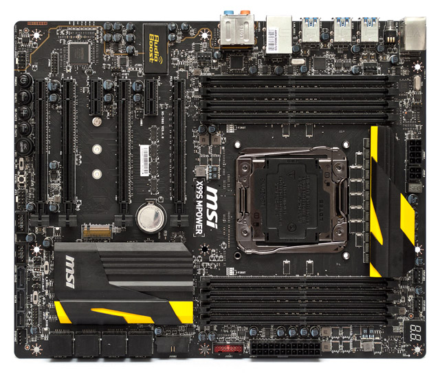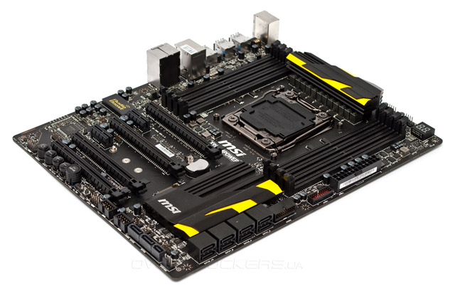 Материнская плата имеет стандартные размеры форм-фактора АТХ. Строгий внешний вид MSI X99S MPOWER придает сочетание черного матового текстолита, черных же разъемов и черно-желтых элементов конструкции системы охлаждения. Как следует из названия, новинка базируется на чипсете Intel X99. Системная плата располагает восемью разъемами DIMM для установки модулей ОЗУ стандарта DDR4, которые в режиме разгона могут работать на частотах 3333 МГц и выше, а максимальный объем оперативной памяти ограничен на уровне 128 ГБ.