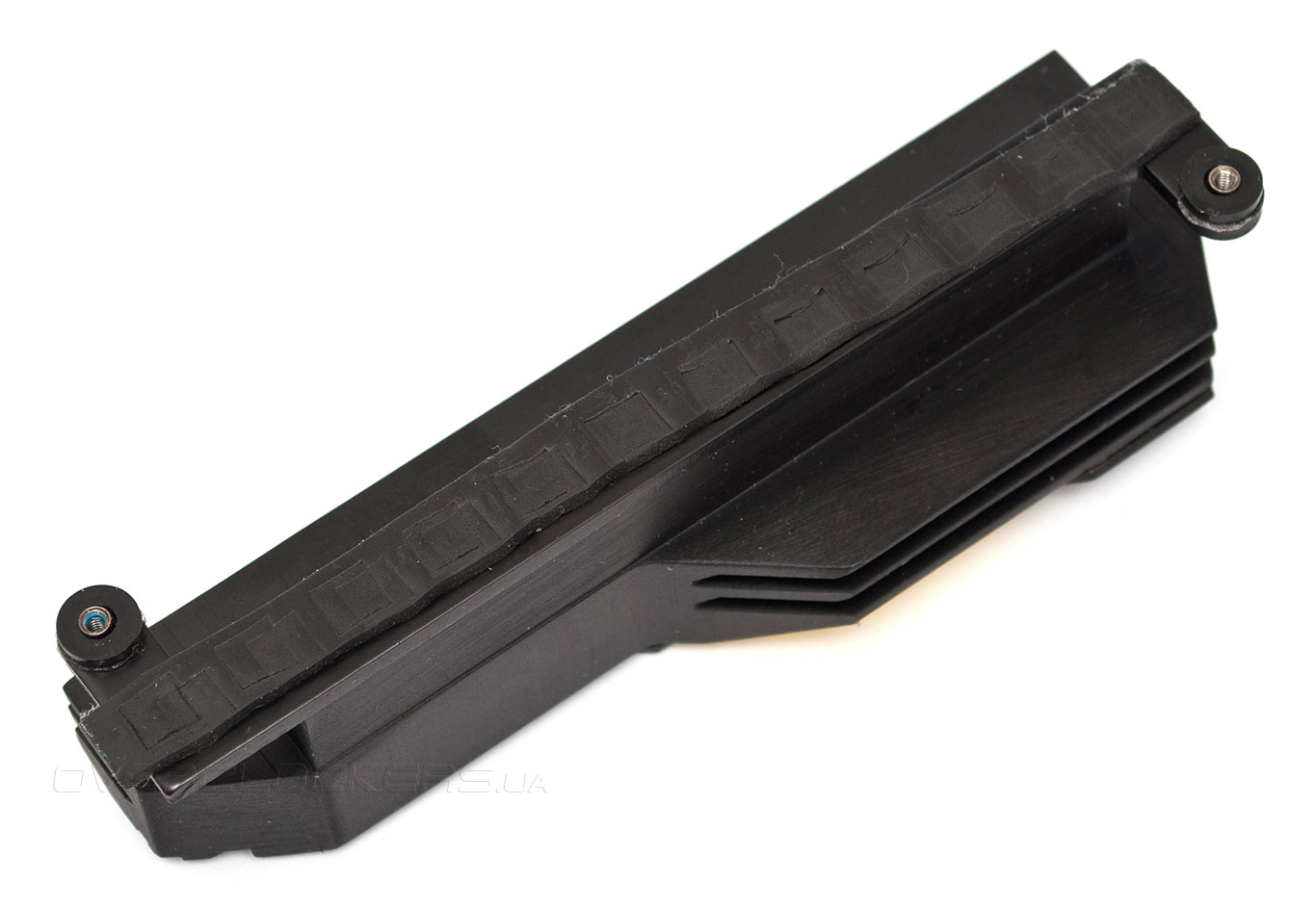 Силовые элементы контактируют с подошвой радиатора через прокладку из черного пластичного термоинтерфейса. Несмотря на отсутствие усилительной пластины в конструкции винтовое крепление обеспечивает достаточное усилие прижима.