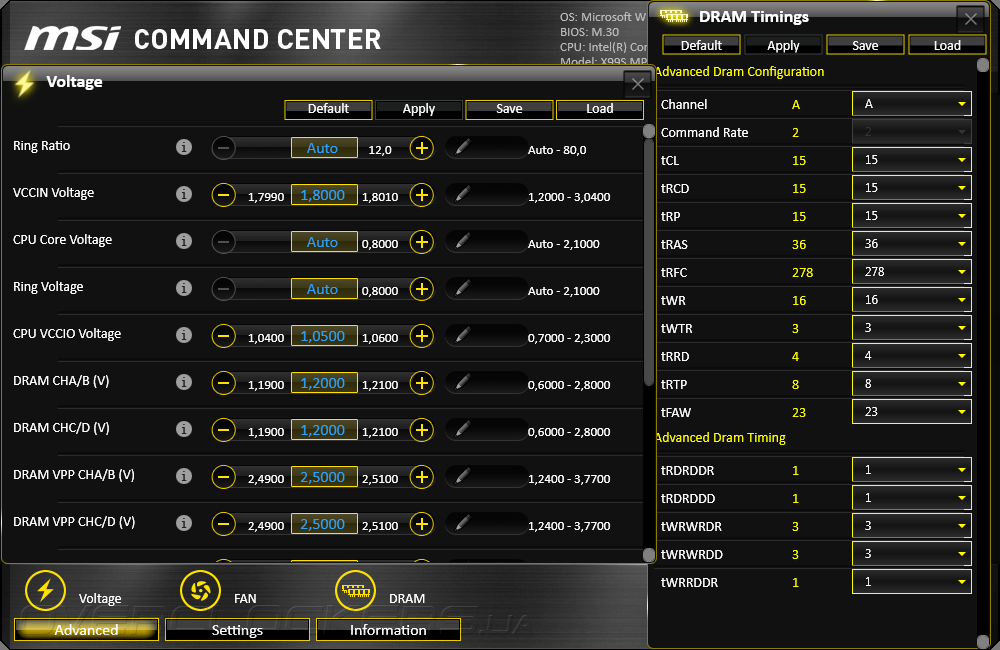 C помощью Command Center можно управлять напряжениями на всех основных узлах материнской платы и регулировать тайминги ОЗУ.