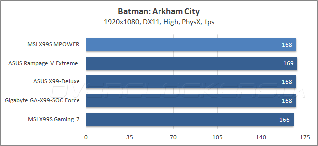В реальных игровых приложениях раскрылся весь потенциал MSI X99S MPOWER. В шутере Batman: Arkham City героиня сегодняшнего обзора оказалась в лидерах, а в RTS Total War: Rome II новинка показала высший fps.