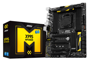 Материнская плата имеет стандартные размеры форм-фактора АТХ. Строгий внешний вид MSI X99S MPOWER придает сочетание черного матового текстолита, черных же разъемов и черно-желтых элементов конструкции системы охлаждения. Как следует из названия, новинка базируется на чипсете Intel X99. Системная плата располагает восемью разъемами DIMM для установки модулей ОЗУ стандарта DDR4, которые в режиме разгона могут работать на частотах 3333 МГц и выше, а максимальный объем оперативной памяти ограничен на уровне 128 ГБ.