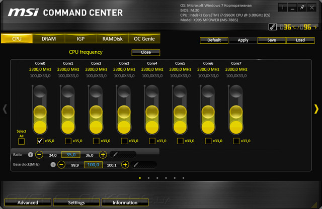 На вкладке DRAM задается напряжение для двух пар каналов ОЗУ, а вот подраздел IGP остался в программе вследствие унификации с версиями Command Center для платформы LGA1150.