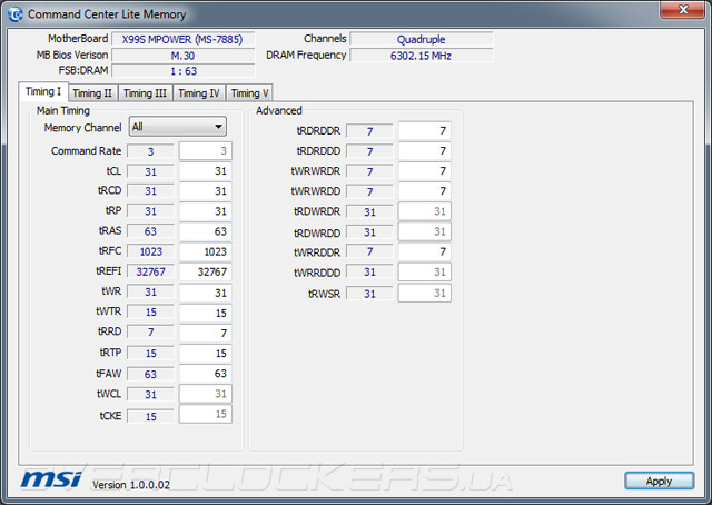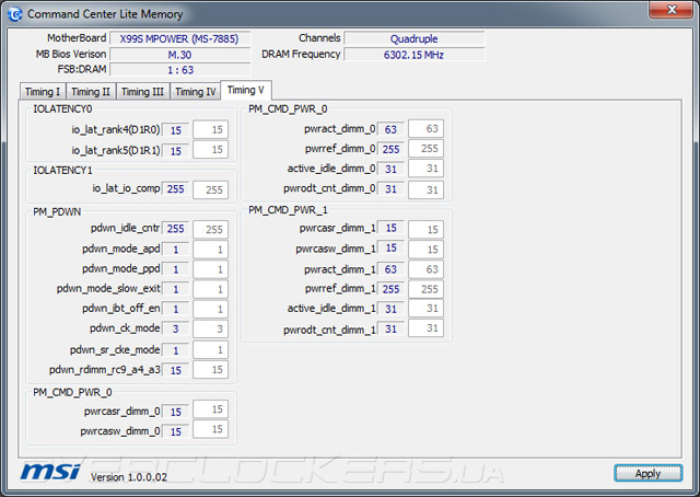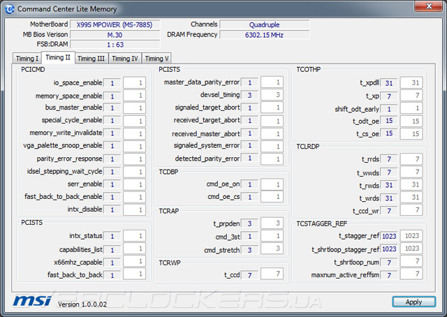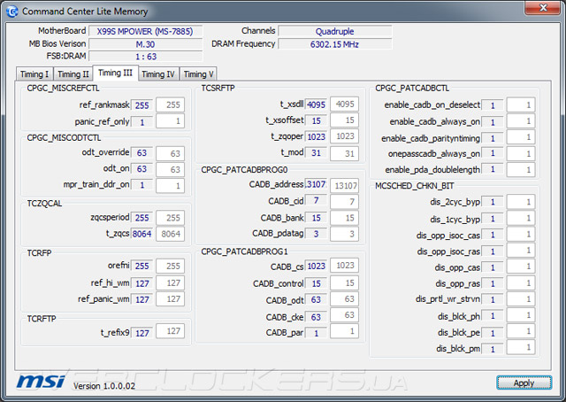 Наконец, вместе с MSI X99S MPOWER поставляется пара утилит, которые из-за своего дизайна и набора возможностей вряд ли заинтересуют рядовых пользователей, но могут быть полезными для энтузиастов разгона. Речь идет о программах Command Center Lite и Command Center Lite Memory, первая из которых предназначена для настройки базовых параметров разгона, таких как регулировка BCLK, множителя вычислительных ядер и основных напряжений, а вторая подпрограмма, как следует из названия, позволяет управлять параметрами подсистемы ОЗУ.