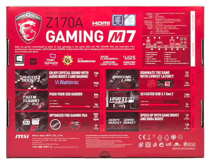 Первым решением из новой серии в нашей лаборатирии побывала модель Z170A Gaming M7, которая, исходя из индекса, располагает несколько большими возможностями (относительно базовых).