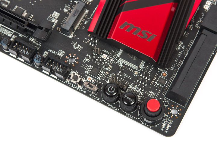 Уже традиционно для игровых материнских плат MSI используется черная матовая поверхность. Размеры соответствуют формату ATX. На PCB находится большое число кнопок и переключателей — всё для облегчения работы с устройством в режиме открытого стенда. В то же время, узел с точками по замеру действующих напряжений заметно упростили, сделав его менее удобным в использовании.