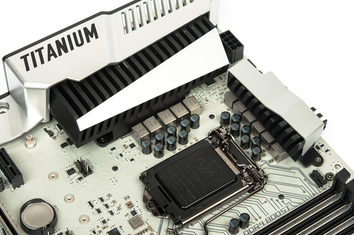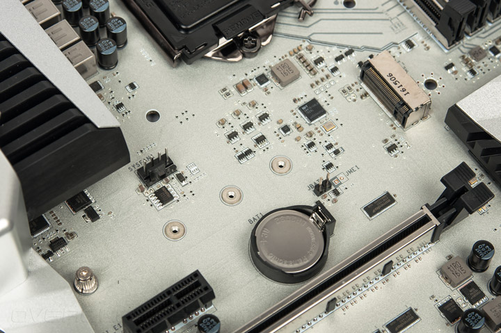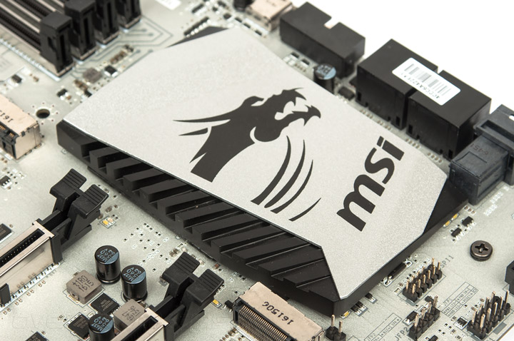 Номинальная принадлежность к оверклокерской серии означает наличие серьёзной аппаратной базы для проведения разгона. В это же время есть и игровые атрибуты, главным образом ощутимые в программной оснастке. Вместо SATA-E распаян порт U.2. Интригующе смотрится армирующая тематика: большинство гнёзд оснащено своеобразным экраном, а сама плата имеет накладку из толстого листа металла с тыльной стороны.