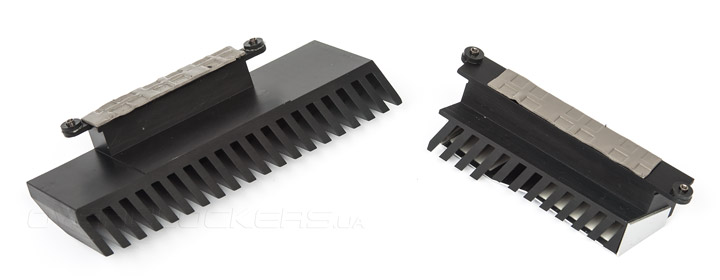 Крепятся радиаторы посредством винтов и имеют хороший контакт с транзисторами, в этом им помогли пара термопрокладок достаточной площади. Интересно отметить, один из них явно крупнее другого.