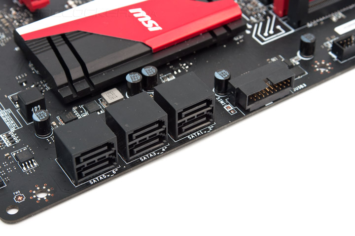 Интерфейс SATA-E не реализован, есть традиционная шестёрка гнёзд SATA, немного выше — пара USB 3.1 Gen1 для подключения корпусных кабелей.