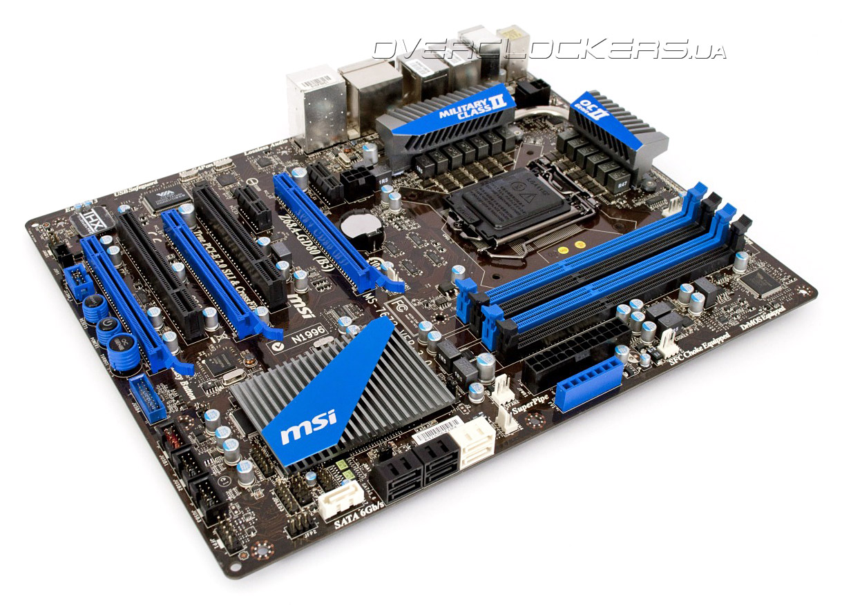 Чипсет Intel Z68 Express обеспечивает поддержку процессоров Intel Core i3/i5/i7 второго поколения, а также процессоров Pentium в исполнении LGA1155. Любители разгона оценят возможность свободно изменять множитель у соответствующих моделей. Кроме того, системная логика позволяет выводить изображение, сформированное встроенным в процессор видеоядром Intel HD Graphics 2000/3000. В дополнение к этому, инженеры MSI оснастили Z68A-GD80 (B3) уникальной технологией графической виртуализации LucidLogix Virtu, которая позволяет совместить экономичность и мультимедийные функции интегрированного графического акселератора и мощь дискретного видеоадаптера. Архитектуре, особенностям работы и оценке производительности LucidLogix Virtu мы посвятим отдельные раздел, так как реализация этой технологии достойна пристального внимания. Что касается возможностей установки дискретной графики, то плата оснащена тремя разъемами PCI-E 2.0 x16. Первый и второй можно использовать для построения конфигурации CrossFireX и SLI, при этом 16 линий PCI-E 2.0 делятся поровну между слотами. При установке единственного адаптера, верхний порт работает на полной скорости х16. Расположение разъемов таково, что даже длинные видеокарты не заблокируют защелки слотов оперативной памяти. Третий разъем PCI-E 2.0 всегда работает в режиме x16@x4 и может использоваться для установки скоростного RAID-контроллера или накопителя SSD. Для установки плат расширения предлагается использовать два порта PCI-E 2.0 x1 и пару PCI; последние функционируют благодаря микросхеме-мосту ASMedia ASM1083.