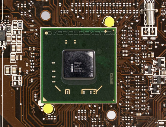 Как мы уже говорили, в основе рассматриваемой системной платы лежит набор системной логики Intel Z68 Express — самое новое и наиболее мощное решение, предлагаемое чипмейкером для платформы LGA1155. Как и остальные представители семейства Cougar Point, микросхема выполнена в корпусе FCBGA942, имеет типичное энергопотребление 6,1 Вт и производится с применением 65 нм норм литографии.