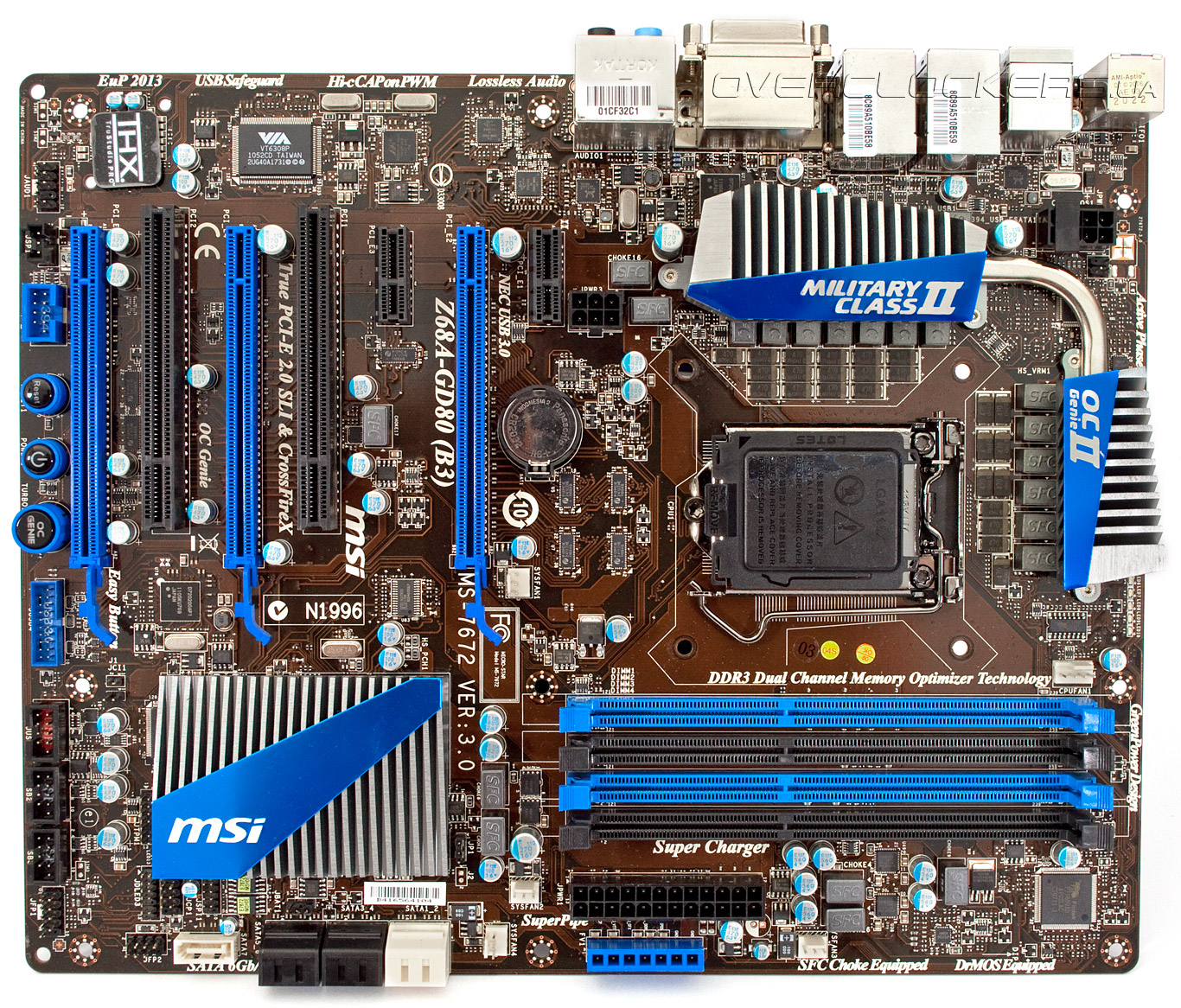 Дизайн задней панели обеспечивает максимальное использование возможностей расширения, заложенных в MSI Z68A-GD80 (B3).